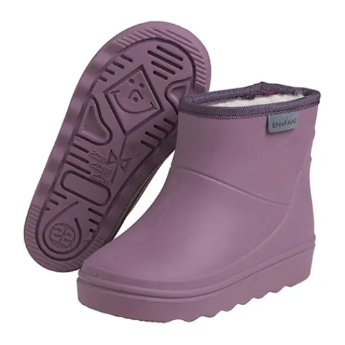 Ensfarvede korte termotstøvler fra EN FANT. Støvlen har påsyet EN FANT logo øverst. Støvlen er foret med en uldblanding som sammen med aluminumsmembran i sålen hjælper med at holde fødderne varme. Termostøvlerne er formstøbte af letvægtsgummien Megol. Megol er slidstærkt og giver samtidig god bevægelighed for barnet. Termostøvlerne har dybe riller i den fleksible bund, så det er lettere at holde fodfæste.