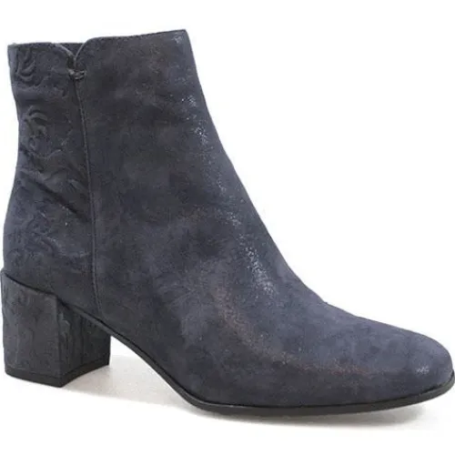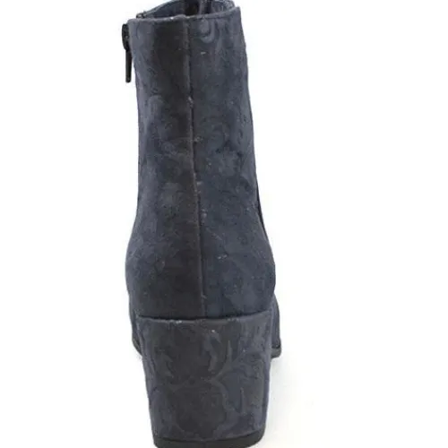 Super flot støvle i præget skind. På bagerste del af støvlen er præget lidt kraftigere med blomstermotiv. Støvlen har indvendig lynlås og tekstilfoer.