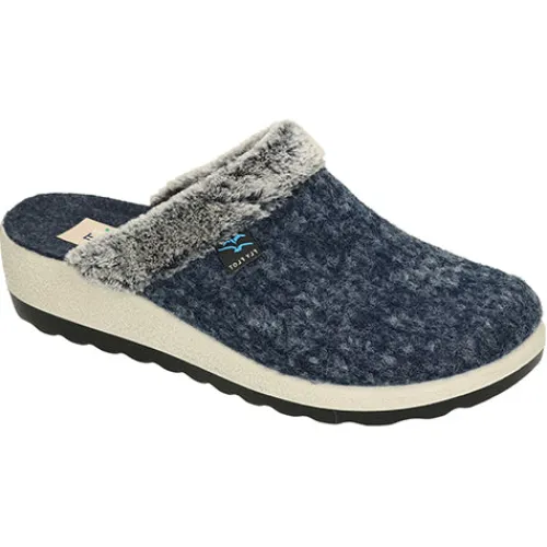 Dejlig og komfortabel slippers-hjemmesko med lidt hælhøjde i en kilehæl med plateau under forfoden. Overdelen er af tekstil, og åbningen er kantet med blødt faux pels. Hjemmeskoen har en fodformet, anatomisk form, som er gavnlig og komfortabel for fødderne, og den polstrede dæksål tilpasser sig din fod. Mellemsålen og ydersålen er fleksible og stødabsorberende, og mønstret i ydersålen giver et fint fodfæste.