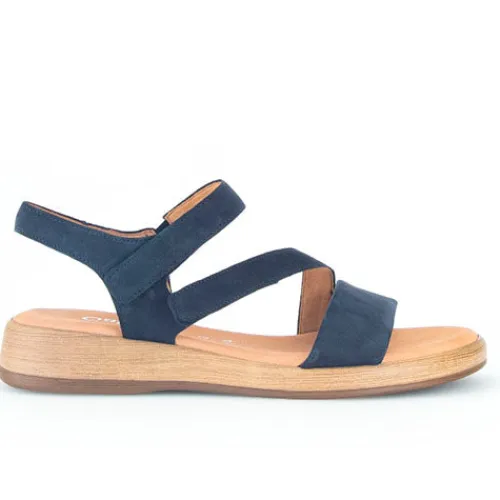 Lækker sandal med 2 cm kilehæl. Overdelen er af nubuck, og sandalen lukkes med to velcroremme over vristen. Dæksålen er komfortabel, og med vidde G er der ekstra plads om forfoden. Den diskrete kilehæl med trælook giver et flot look, og hælhøjden på 3 cm føles lavere pga. den ca. 1 cm høje plateausål under forfoden. Fås i halve størrelser.