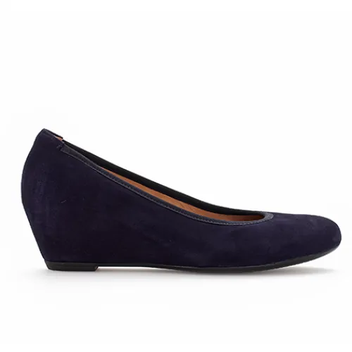 Enkel og fin sko fra Gabor med lille kilehæl og skinddæksål. Super dejlig at have på. Elastikkanten for oven får skoen til at sidde godt på foden.