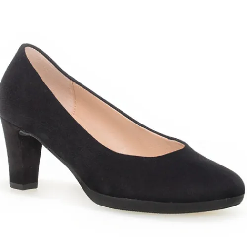 Super fin pumps fra Gabor med lille plateau på forfoden. Skoen har en behagelig hæl som er beklædt med ruskind. Dæksålen er belagt med skind og dejlig blød.