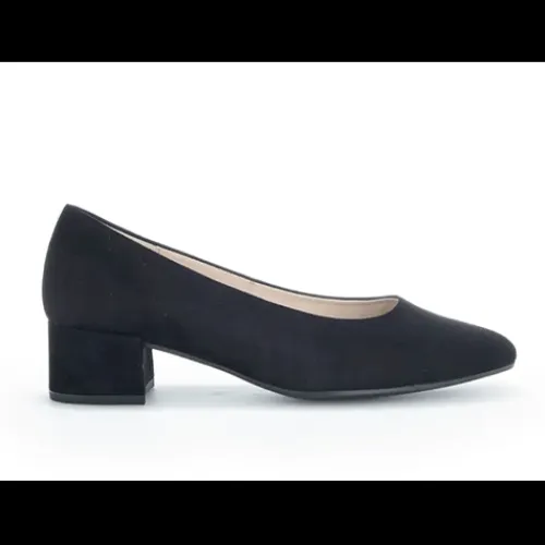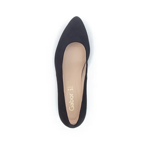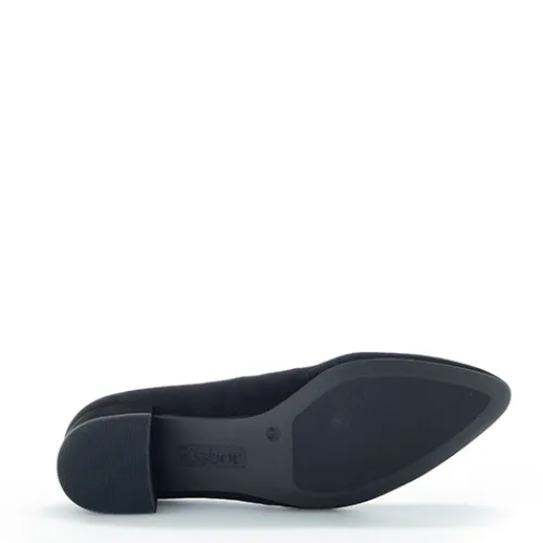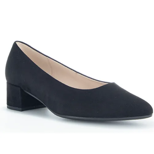Flot og enkel pumps fra Gabor med praktisk hæl og tilspidset snude.