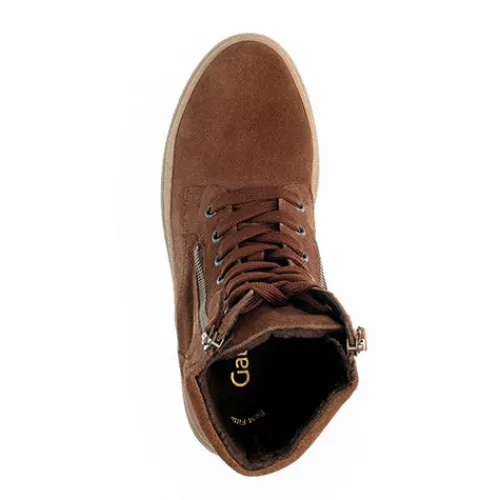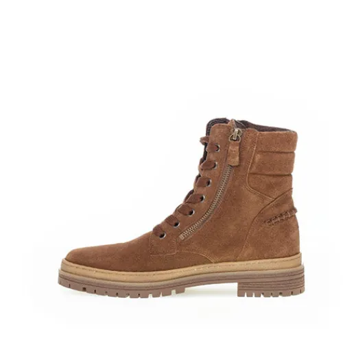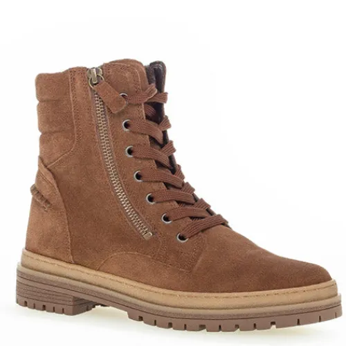 Super fin støvle fra Gabor i flot brun farve. Støvlen har snøre og dobbelt lynlås og rummer godt i forfoden. Indvendig i støvlen er der tekstilfoer og udtagelig indersål.