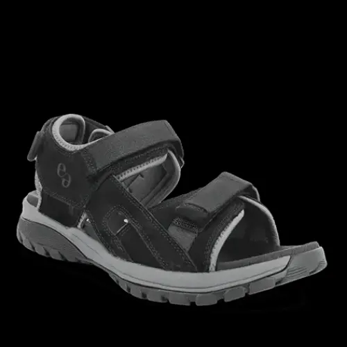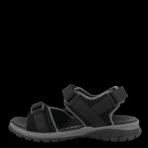 Lækker Varberg Vince sandal med en overdel af nubuck fra certificeret garveri foret med tekstil. Sandalen justeres og lukkes med tre velcroremme (forfod, vrist og hæl), og med vidde H er der god plads til den bredere fod. Den formstøbte fodseng med 4 mm Energyfoam er blød og polstret, imens den fleksible ydersål er stødabsorberende og robust med et godt fodfæste.