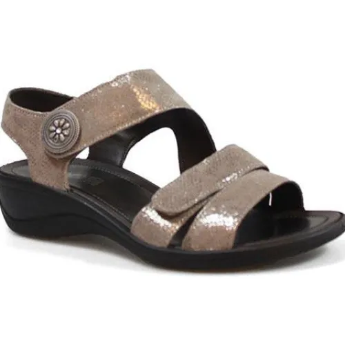 Rigtig fin sandal fra Imac med støbte såler, der forlænger levetiden. Sandalen har en lille kilehæl med behagelig højde. Sandalen har velcro over vrist og den ene rem over forfoden. Indvendig skind, samt bløde og fleksible såler.