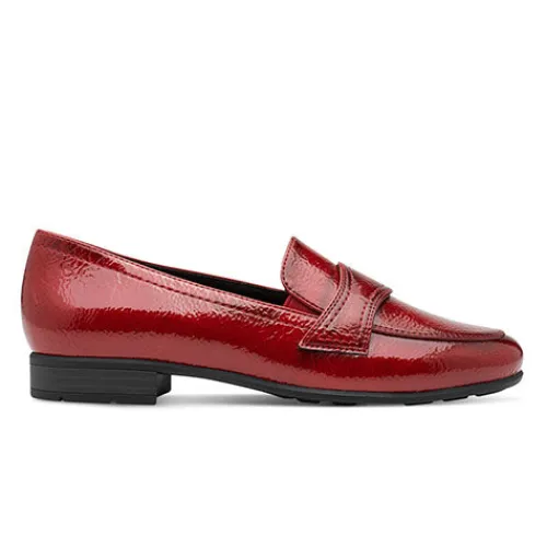 Fin loafer med en overdel af lakeret syntet. Elastikkiler ved åbningen giver skoen fleksibilitet, så den tilpasser sig foden i løbet af dagen. Den polstrede Soft Line-indersål er ekstra komfortabel, og med en vidde H-læst er der god plads til den bredere fod. Den fleksible gummiydersål er stødabsorberende med et godt fodfæste. 100 % vegansk.
