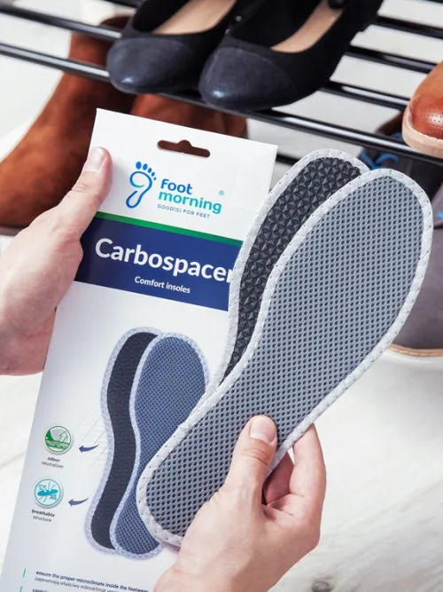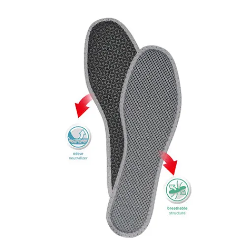 Carbospacer Comfort sål med aktivt kul, der neutraliserer lugt og sikrer korrekt mikroklima i fodtøjet. Komfortabel og hygiejnisk sål med åndbar struktur, der bekæmper fod- og skolugt. Sålen er fremstillet af tre lag: