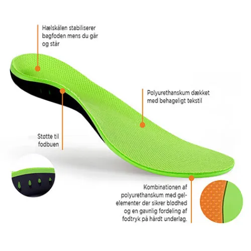 Duo Ballance indersålen er en komfortsål med stødabsorbering og svangstøtte. Sålen er udført af polyurethanskum (PU) belagt med blødt striktekstil, og den har gelépuder under hælen og forfoden samt en polyurethan-profil i svangen. Kombinationen af polyurethanskum og gelépuder sikrer en blød og jævn vægtfordeling under foden, selv på hårde overflader. Den formstøbte sål støtter svangen på langs og holder foden i en korrekt position, imens hælkoppen stabiliserer bagfoden, når man står og går. Sålen er stor i størrelsen.
