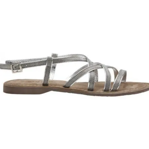 Smuk sandal fra Lazamani med tynde remme, der sidder tæt på foden. Dæksål i skind.
