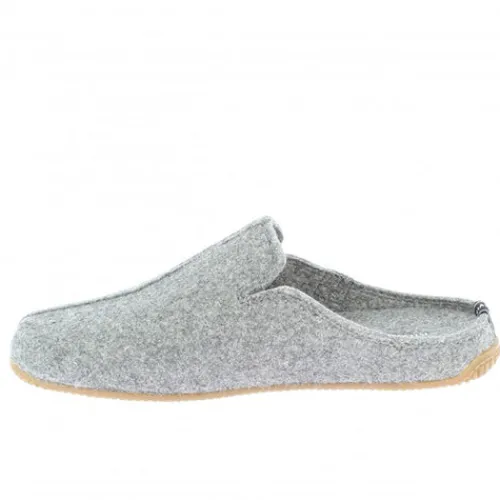 Smart og komfortabel slippers-hjemmesko af robust uldfilt, som består af 50 % ny uld, 20 % genanvendt uld og 30 % polyester. Har en smart syning ned ad vrist og forfod og er dekoreret med et logo på ydersiden samt en trækfane på hælen. Den polstrede og komfortable indersål kan tages ud, og den fleksible ydersål af 100 % naturgummi giver et fint fodfæste. 100 % designet og fremstillet i EU.