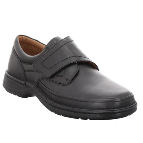 Dejlig sko med en overdel af glat skind. Skoen lukkes med en bred rem over vristen, og åbningen er polstret for øget komfort. Indvendig har skoen et foer af skind og tekstil, og den komfortable indersål er beklædt med skind. Den fleksible ydersål er stødabsorberende med et godt fodfæste.