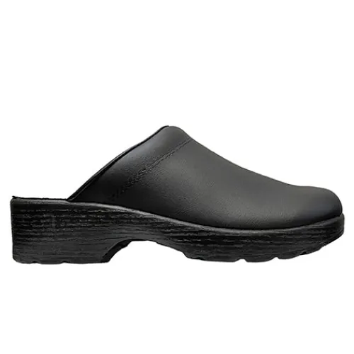 Let og fleksibel tøffeltræsko med en overdel af glat skind med en blød og komfortabel indersål af skind. Den fleksible ydersål er stødabsorberende med et fint fodfæste. Hældrop 2 cm.
