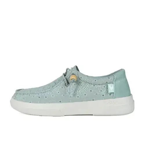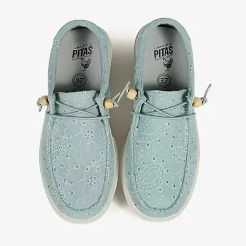 Lækker Kila Wallabi sko med en åndbar og smukt broderet overdel af 100 % bomuld samt ruskind på hælen med en moc toe-syning på forfoden. Skoen er udstyret med en elastisk snøre, som ikke skal bindes, og snørens ender er dekoreret med en træperle, som nemt kan tages af. Åbningen er polstret for øget komfort, og indvendig har skoen et blødt bomuldsfoer. Den ekstratykke, polstrede og udtagelige EVA-indersål beklædt med skind er åndbar og fugttransporterende og giver høj komfort hele dagen. Den fleksible og lette EVA-ydersål er stødabsorberende med et fint fodfæste. Her får du en superlet og komfortabel Wallabi-sko, som nem at tage af og på, og som holder dig cool hele sæsonen.