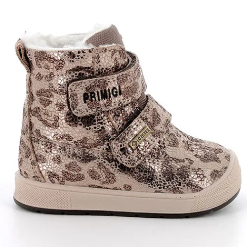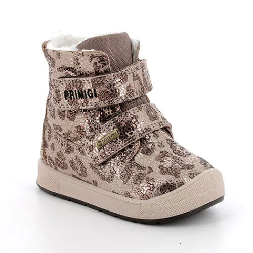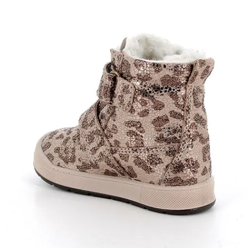 Dejlig vinterstøvle med en overdel af lamineret ruskind med tryk (dyreprint) og en pløs med tekstil. Støvlen lukkes med to velcroremme, og en trækfane bagpå hjælper med at træde i støvlen. Indvendig har støvlen et varmt uldfoer, og sammen med en åndbar og vandtæt GORE-TEX®-membran holdes fødderne varme og tørre. Den udtagelige indersål med filt er åndbar og anatomisk, og den fleksible ydersål er stødabsorberende med et fint fodfæste.