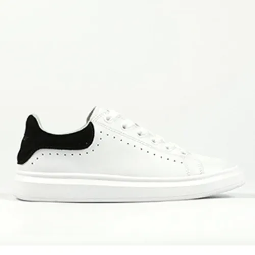 Hvid lædersko fra Richter med snørebånd og sort skinddetalje på hælkappe.