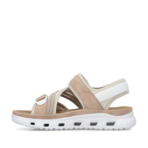 Dejlig trekkingsandal med en overdel af syntetisk læder og tekstil. Sandalen lukkes med to velcroremme (forfod og vrist). Dæksålen er behagelig, og den fleksible og ultralette EVA-ydersål er stødabsorberende med et fint fodfæste.