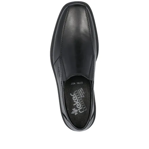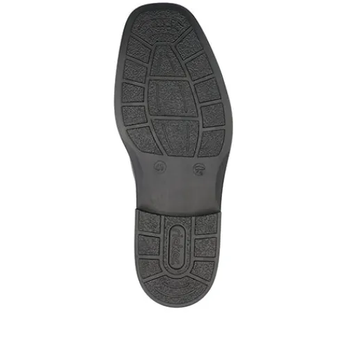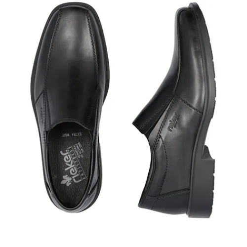 Superflot herresko med en overdel af glat skind og en elastikkile på begge sider af åbningen, så det er nemt at træde i skoen. Åbningskanten er let polstret for øget komfort, og med ekstra vidde er der endnu mere komfort til den bredere fod, da skoen er mere rummelig omkring forfoden. Antistress-indersålen er polstret og komfortabel, og ydersålens mønstrer giver et fint fodfæste.