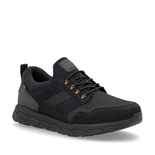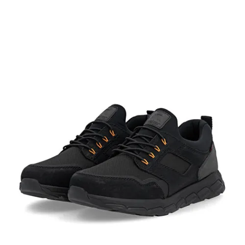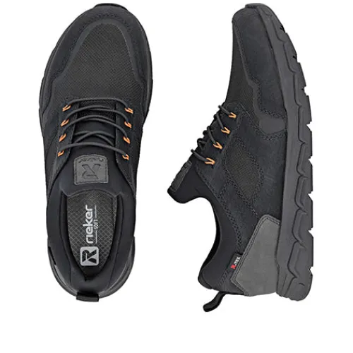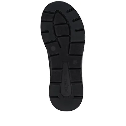 Let og lækker sko med en overdel af tekstil og syntet med NanoWater Protect, som er en vand- og smudsafvisende højteknologisk nanobelægning. Sammen med en kraftigt vandafvisende RiekerTEX-membran holdes fødderne behagelige i vådt vejr. Skoen er en slip on-model med en ikkejusterbar elastiksnøre og tilpasser sig foden i løbet af dagen, og en trækfane bagpå gør det nemt at træde i skoen. Åbningen er godt polstret og øger både komforten og beskyttelsen, og med vidde H er der plads til den bredere fod. Den udtagelige Rieker Soft-indersål er blød og komfortabel, imens ydersålen med gummibelægninger er stødabsorberende med et godt fodfæste.