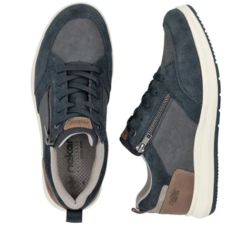 Dejlig sneaker med en overdel af skind og syntet. Skoen justeres med snørebånd og lukkes med en lynlås på ydersiden af foden, imens en trækfane på hælen gør det nemt at træde i skoen. Åbningen er polstret for øget komfort, og indersålen kan tages ud. Med ekstra vidde er der god plads om forfoden. Den fleksible ydersål er stødabsorberende med et godt fodfæste.