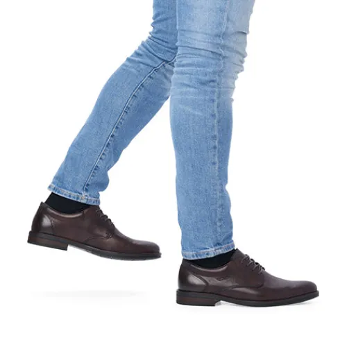 Elegant sko i klassisk look. Overdelen er glat skind, og skoen lukkes med snørebånd. Let polstret åbning samt en blød indersål af læder giver øget komfort. Skoen er let og fleksibel med god plads om forfoden. TR-ydersålen indeholder bl.a. gummi, som giver et godt fodfæste, og skoen er stødabsorberende. Her får du en sko, der kombinerer komfort og stil.