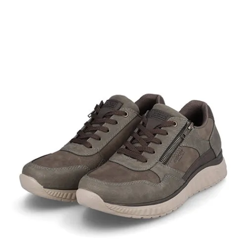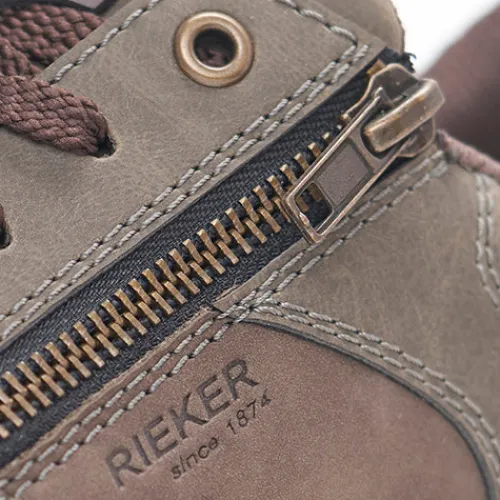 Let og fleksibel herresko fra Rieker med snører og lynlås. MemoSoft indersålen er udtagelig, og skoen er stødabsorberende og med god plads til forfoden.