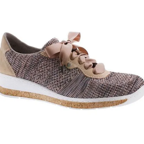 Sneakers fra Rieker der både er smart og komfortabel. Overdelen er i strik med isat elastik, der hvor evt. knyster sidder. De fine satinsnørebånd giver skoen et feminint udtryk.