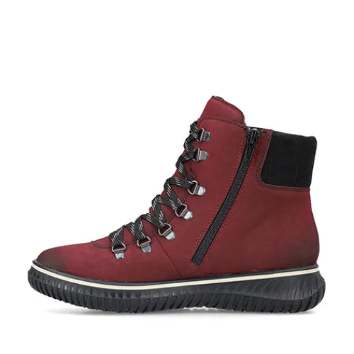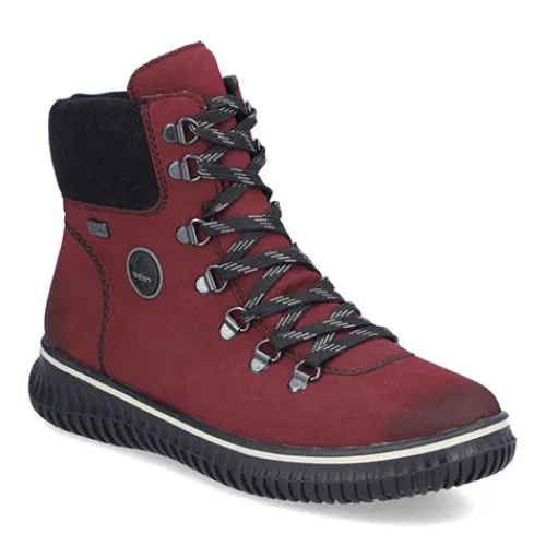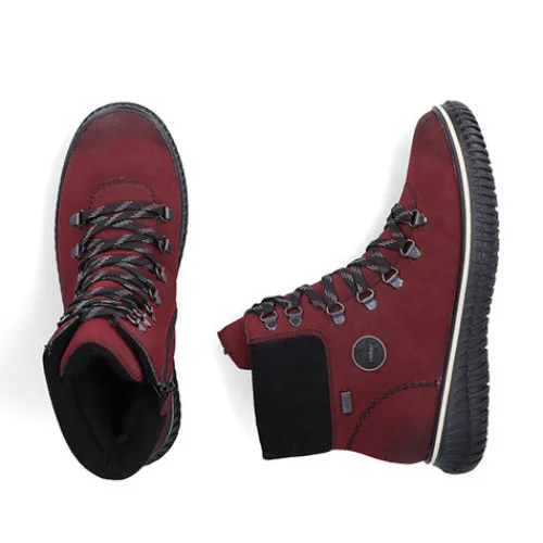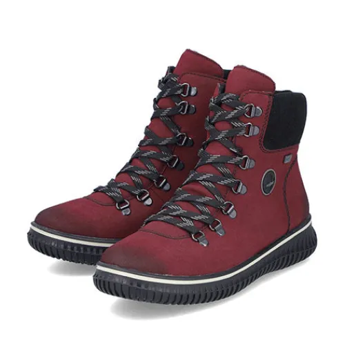 Dejlig vinterstøvle med en overdel af syntet i nubuck-look. Støvlen justeres med snørebånd og lukkes med en lynlås på indersiden af anklen. Den brede åbningskant om anklen er godt polstret for øget komfort og beskyttelse, og med komfortvidde er der mere plads om forfoden. Indvendig har støvlen et varmt foer samt en vandafvisende Rieker-Tex-membran, så fødderne holdes varme og behagelige. Den udtagelige indersål er polstret og komfortabel, og den fleksible ydersål er stødabsorberende med et godt vejgreb.