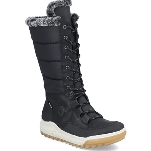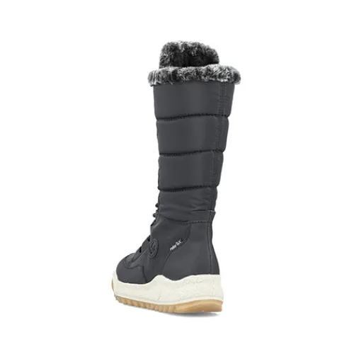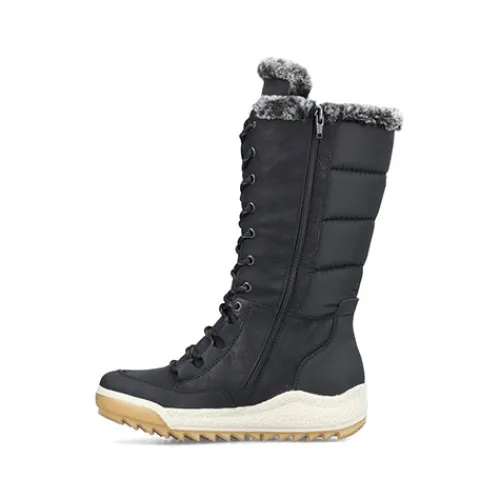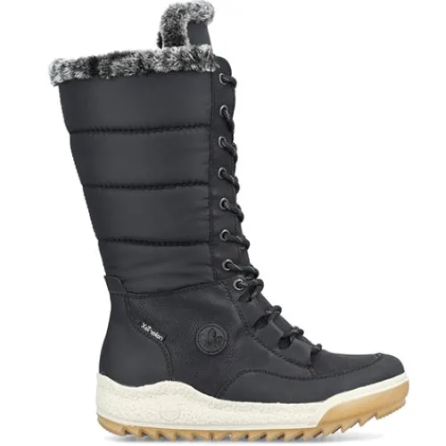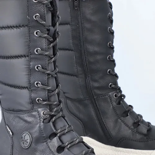 Dejlig vinterstøvle med en overdel af åndbart tekstil og slidstærke syntetdetaljer, dekoreret med en kant af faux pels på kanten af åbningen. Støvlen justeres med snørebånd og lukkes med lynlås på indersiden af det lange skaft. Med den vandafvisende RiekerTEX-membran holdes dine fødder lune og tørre. Indersålen er komfortabel, og den kraftige ydersål giver et godt fodfæste.