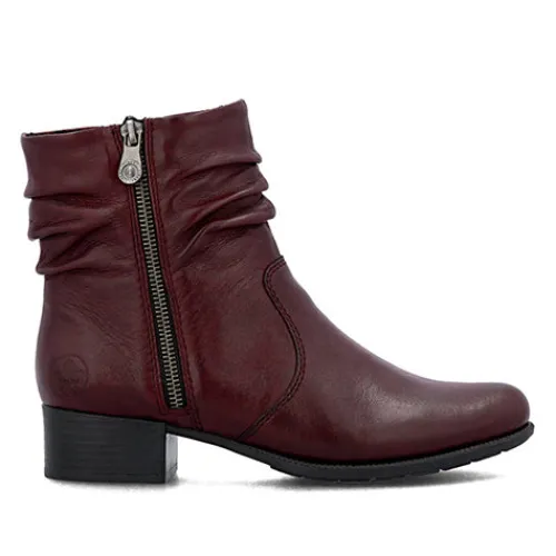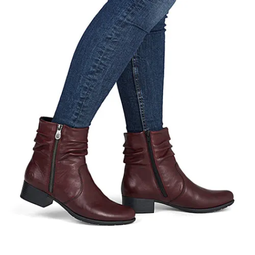 Lækker støvle med en overdel af glat skind, der er rynket om anklen på moderne vis. Støvlen har en lynlås på hver side af anklen, og selvom den på ydersiden godt kan åbnes, så er den mest til pynt. Indvendig har støvlen et let, lunt fleecefoer og en komfortabel indersål. Gummiydersålen er fleksibel, og den ca. 4 cm høje blokhæl giver et feminint look.