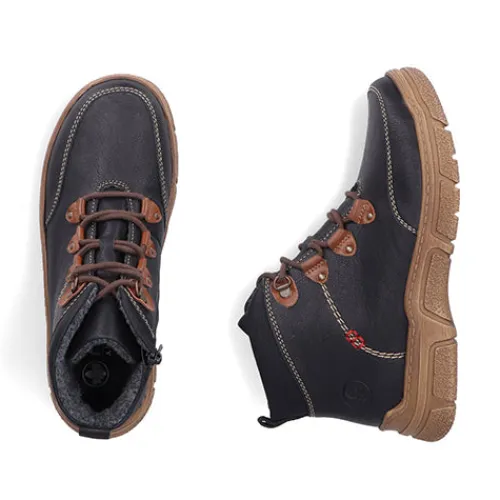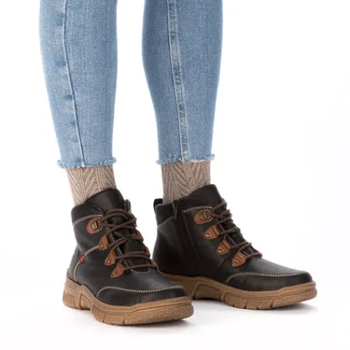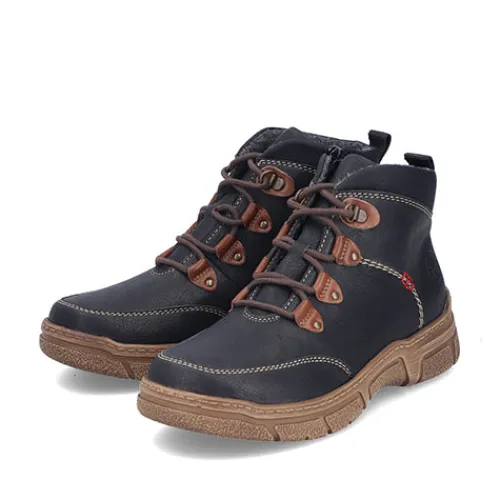 Dejlig støvle med en overdel af syntet med kontrastsyninger, og indvendig har støvlen et lunt foer. Støvlen justeres med snørebånd og lukkes med en lynlås på indersiden af anklen, og en trækfane bagpå gør det nemt at træde i støvlen. Med vidde H er der plads til den bredere fod. Den udtagelige indersål er polstret, støddæmpende og komfortabel, og den fleksible ydersål er stødabsorberende med et godt fodfæste.