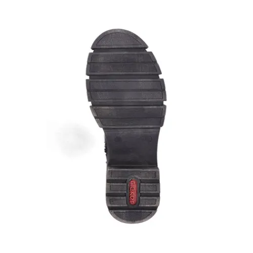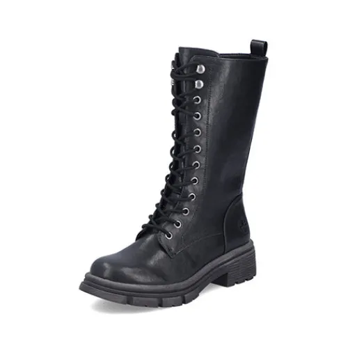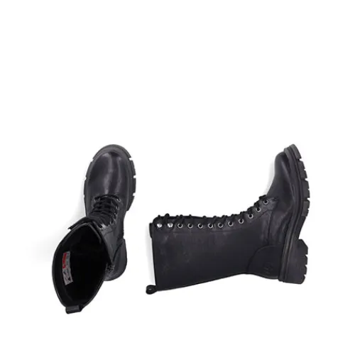 Smart støvle med medium længde skaft. Overdelen er af imiteret glat skind, og støvlen justeres med snørebånd og lukkes med en lynlås på indersiden af benet, imens en trækfane bagpå gør det nemt at træde i støvlen. Indvendig har støvlen et blødt, let fleecefoer. Indersålen er komfortabel, og den kraftige ydersål er stødabsorberende med et godt fodfæste.