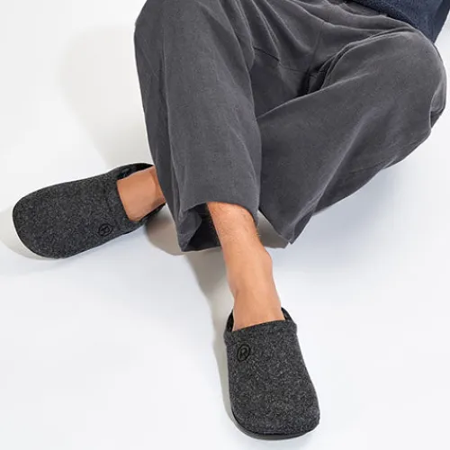 Lækker hjemmesko med en overdel af filt med en polstret åbning. Dæksålen er stødabsorberende, blød og komfortabel, og den fleksible ydersål er stødabsorberende med et fint fodfæste.