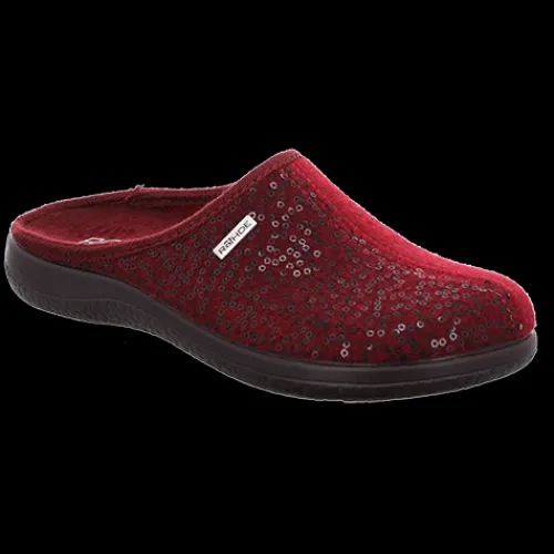 Flot hjemmesko en overdel af filt med et metallogo på ydersiden. Den yderste halvdel af overdelen er bestrøet med pailletter. Den udtagelige indersål er polstret, og den fleksible ydersål er stødabsorberende.