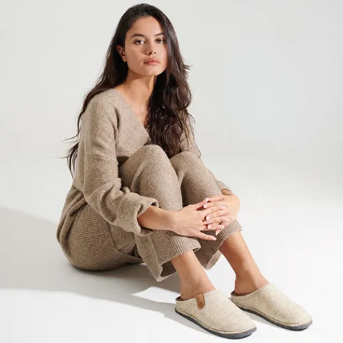 Lys filt hjemmesko med gummisål. Udtagelig skindsål.