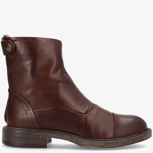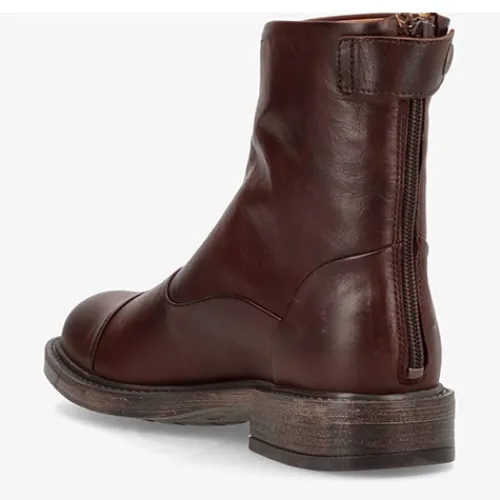 Smart Dahlia ankelstøvle i blødt, glat skind med smarte detaljer som samlinger tværs over forfoden samt på vristen og hælen. Støvlen lukkes med lynlås bagpå hælen samt en lille rem med trykknap på tværs af lynlåsen øverst. Indersålen er af skind, og ydersålens gummimønster giver et fint fodfæste.