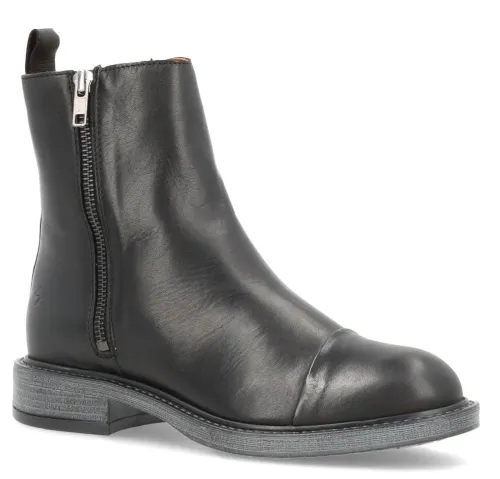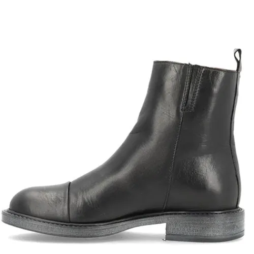 Flot Dania støvle fra Shoedesign Copenhagen med en overdel af blødt, glat skind. Støvlen lukkes med lynlås på ydersiden, og øverst på indersiden giver en lille elastikkile støvlen en optimeret tilpasning til anklen. En trækfane bagpå gør det nemt at træde i støvlen. En samling på tværs af forfoden giver støvlen en smart detalje. Indersålen er beklædt med skind, og ydersålen giver et fint fodfæste.
