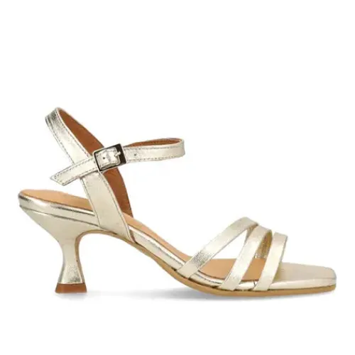 Lækker og feminin Laura skindsandal med 6 cm høj hæl fra Shoedesign. Sandalen har tre remme over forfoden, og den justeres og lukkes med en rem om anklen. Dæksålen er blød og ekstra polstret på hælen for øget komfort.