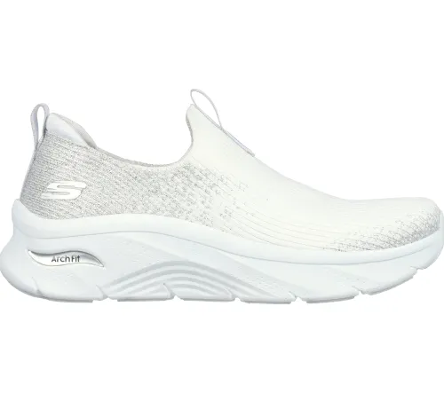 Lækker Arch Fit D’Lux Glimmer Dust slip-on sko med sølvglimmer på snuden og rundt om hælen. Overdelen er af blødt og åndbart striktekstil, og åbningen har trækfane både foran og på hælen, som i øvrigt er polstret for ekstra komfort. Skoen har Stretch Fit for en optimal tilpasning til din fod, og den har Relaxed Fit-pasformen, som giver mere plads til forfoden og tæerne. Den bløde, udtagelige Air-Cooled Arch Fit indersål giver dig god svangstøtte, stabilitet og balance, og den fleksible ydersål gør skoen yderst komfortabel at have på hele dagen. Skoen er 100 % vegansk og kan maskinvaskes ved maks. 30 grader – husk at tage indersålen ud først.