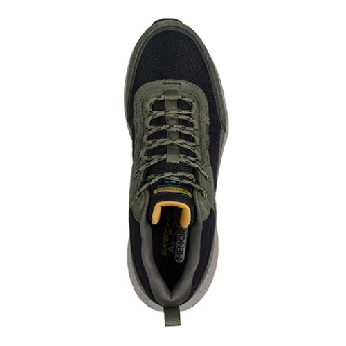 Lækker og vandtæt Bounder RSE – Brekor støvlet med en overdel af ruskind, syntet og tekstil. Støvletten lukkes med snørebånd, og en trækfane på hælen gør det nemt at træde i den. Åbningen er polstret for øget komfort, støtte og beskyttelse, og med Skechers Breathe Easy Technology, som er en ultralet, åndbar og 100 % vandtæt membran, holdes fødderne tørre. Air-Cooled Memory Foam-indersålen er komfortabel, og ydersålen med gummibelægning er stødabsorberende med et godt vejgreb.