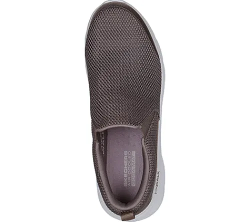 Komfortabel og fleksibel Go Walk Flex Impeccable II sko fra Skechers i en spændende khaki farve. Overdelen er af tekstil, og der er isat en kile af elastik på begge sider ved åbningen, der gør det nemmere at træde i skoen. Det gør trækfanen på hælen også. Åbningen er polstret for øget komfort, og modellen har en Air Cooled Goga Mat indersål, som giver en high-rebound og åndbar stødabsorbering. Letvægtsmellemsålen har responsiv Ultra Go Cushioning, og ydersålen har Flex Pillars-riller i fuld længde på tværs af foden, som øger fleksibiliteten. Kan maskinvaskes ved max 30 grader og skal lufttørres.