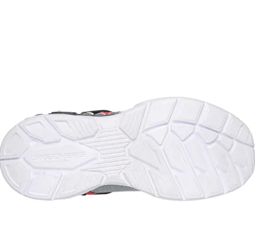 Supersej S Lights – Light Storm 3 sko med blink. Overdelen er af åndbart mesh-tekstil med slidstærke syntetdetaljer på bl.a. snuden, hælen og ved elastiksnøren. Skoen har ikkejusterbar elastiksnøre og lukkes med en velcrorem, og en trækfane på pløsen og hælen gør det nemt at træde i skoen, som har en polstret åbning for øget komfort. For enden af velcroremmen sidder en tænd/slukknap til det blinkende lys. Indersålen er polstret og komfortabel, og den støddæmpende mellemsål lyser op med blink på ydersiden af hælen. Den fleksible ydersål giver et fint fodfæste.