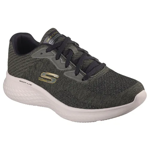 Lækker og let Skech-Lite Pro – Faregrove sko med en overdel af åndbart striktekstil med slidstærkt syntet ved snørebåndet, som skoen lukkes med. Åbningen er polstret for øget komfort, og den polstrede Air-Cooled Memory Foam-indersål tilpasser sig fodens form, er stødabsorberende og sikrer dig komfort og en blød følelse hele dagen. Skech-Lite-mellemsålen er stødabsorberende, og ydersålen er fleksibel, stødabsorberende og giver et godt greb. Fremstillet af 100 % veganske materialer. Kan maskinvaskes ved maks. 30 grader.