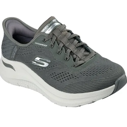 Lækker og vandtæt Slip-ins Arch Fit 2.0 – Morning Mist sko med en overdel af meshtekstil med et vandtæt design med forseglede sømme. Med Slip-ins får du Skechers’ håndfrie teknologi, hvor du nemt kan træde i skoen uden at bruge dine hænder eller at bukke dig, og du får en fast hælkappe med en specialdesignet hælpude, der former sig til din hæl og dens naturlige kurve. Skoen lukkes med snørebånd. Den udtagelige Arch Fit®-indersål giver svangstøtte, former sig efter foden, reducerer stød og er komfortabel, og den gummibelagte ydersål er stødabsorberende med et godt fodfæste. Fås i halve størrelser. Er fremstillet af 100 % ikkeanimalske materialer.