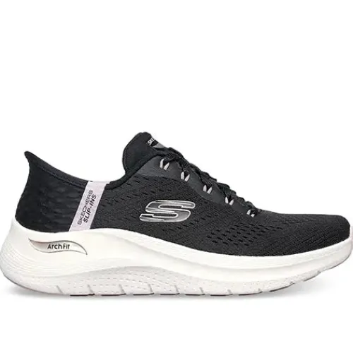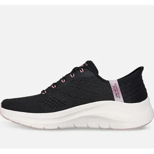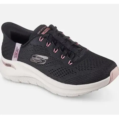 Dejlig Slip-Ins Arch Fit 2.0 – Easy Chic sko med en overdel af let og åndbart meshtekstil. Skoen justeres med snørebånd og er en Slip-ins-model, hvor du nemt glider i skoen uden at bukke dig eller bruge dine hænder. Om hælen får du øget komfort med den indvendigt siddende specialdesignede Heel Pillow-pude, som former sig til din hæl og dens naturlige kurve samt holder din fod på plads. Den udtagelige Arch Fit-indersål giver god svangstøtte og maksimal komfort, og den hjælper med at forme sig efter din fod for at reducere stød og øge vægtfordelingen. Mellem- og ydersålen er stødabsorberende, og ydersålen er desuden slidstærk og fleksibel med et godt vejgreb. Kan maskinvaskes ved max 30 grader. 100 % vegansk.