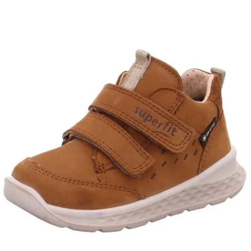 Superkomfortabel Breeze børnesko med en overdel af blød nubuck og på hælen ruskind. Skoen lukkes med to velcroremme og har trækfane på både hæl og pløs. Skoen er åndbar med tekstilfoer, og den udtagelige indersål er beklædt med skind, som giver et godt fodklima. Med en åndbar og vandtæt Gore-Tex®-membran holdes fødderne tørre. Skoen har en god pasform, der støtter barnets fod, og den lette sportsydersål er fleksibel og stødabsorberende med et godt fodfæste.