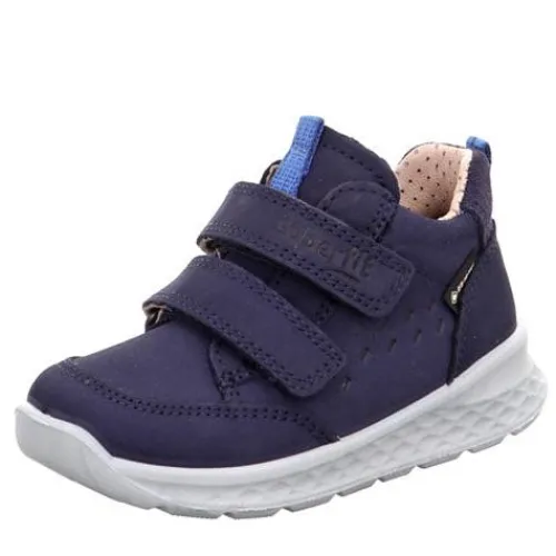 Superkomfortabel Breeze børnesko med en overdel af blød nubuck og på hælen ruskind. Skoen lukkes med to velcroremme og har trækfane på både hæl og pløs. Skoen er åndbar med tekstilfoer, og den udtagelige indersål er beklædt med skind, som giver et godt fodklima. Med en åndbar og vandtæt Gore-Tex®-membran holdes fødderne tørre. Skoen har en god pasform, der støtter barnets fod, og den lette sportsydersål er fleksibel og stødabsorberende med et godt fodfæste.