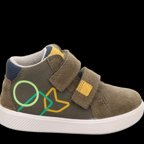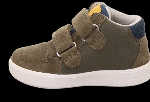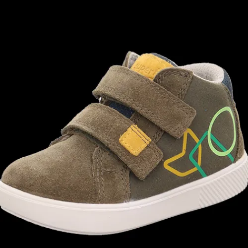 Fin sko til de små. Overdelen er af ruskind og tekstil, og skoen lukkes med to velcroremme over vristen. Den bløde indersål kan tages ud, og ydersålen er fleksibel.