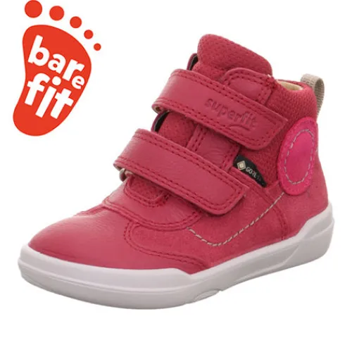 Dejlig Superfree Barefit støvle med GORE-TEX. Overdel er af LWG-certificeret glat nappaskind og ruskind samt tekstil, dekoreret med et rundt lædermærke med glimmereffekt. Indvendig har støvlen et foer af kromfrit skind samt et lunt fleecefoer, og med en vandtæt og åndbar GORE-TEX-membran holdes fødderne tørre, behagelige og varme. Støvlen lukkes med to velcroremme over vristen, og en trækfane på hælen gør det nemmere at træde i støvlen. Åbningen er polstret for øget komfort, støtte og beskyttelse, og den fleece-beklædte indersål kan tages ud. Denne barfodsstøvle med generøs plads til tæerne giver en dejlig frihedsfølelse, og den ultralette, fleksible ydersål er stødabsorberende med et fint fodfæste.