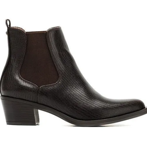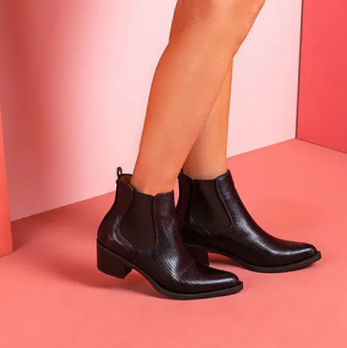Fin chelsea støvle i western stil fra Unisa. Støvlen har en tilspidset snude og en kraftig hæl. Støvlen er foret med skind.